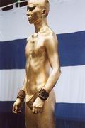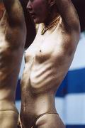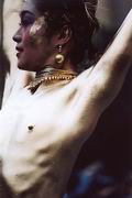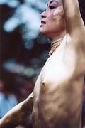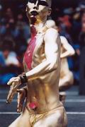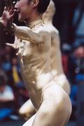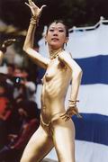 君の細胞、全ての細胞からほとばしるエネルギー。 観衆は全身にそのエネルギーを浴び、陶酔の世界に迷いでる。 彼らの一人に、2回目のショーが終わってから大須の商店街で偶然出会い、話をしました。 とっても礼儀正しい好青年でした。 金色での登場は、あまりリクエストが無いそうですが、そこは名古屋、金のしゃちほこに掛けたのかな。 日本国内はもちろん、海外に出かけて演ずる事もあるって言ってました。 きらきらした目、謙虚な態度、そして何よりも感じる真摯な活力。 [出演:大駱駝艦] |