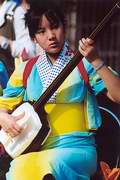 尾西市歴史民族資料館前の広場に、六斎ばやしの和音が響きわたる。