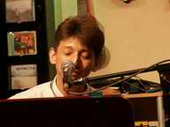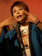 フォークタイムライブ(定例会)は、 『 ライブスタイルのコミュニケートの場、自由で気軽な歌い場 』 (主催者の大はしたっちゃんのサイトからパクってきちゃった。) この日の出演は、写真の順番でいうと、 あやちゃん、ふっき〜、かずちゃん、録君、 たっちゃん(主催者)、今池コータローさん、ぴょんちゃん、YUMIKOちゃん。 録君の相棒の美貌のマジョンナさんをお見せできなくて、残念。 歌い手たちの心は、飛翔し、歌い手たちの気合は混交する。 自分の内なる世界を、恥ずかしげに、そしてゆっくりと隙間を広げていく。 撮影地:名古屋市港区港栄(平成17年6月19日(日)撮影) |