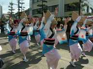 微笑みと熱気が太閤連の踊り手たちから、みなぎり出る。